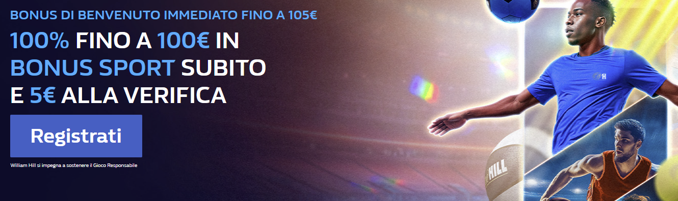 Hai diritto a ben due bonus! È arrivato il momento di iscriversi a William Hill per avere subito 5€ senza deposito!